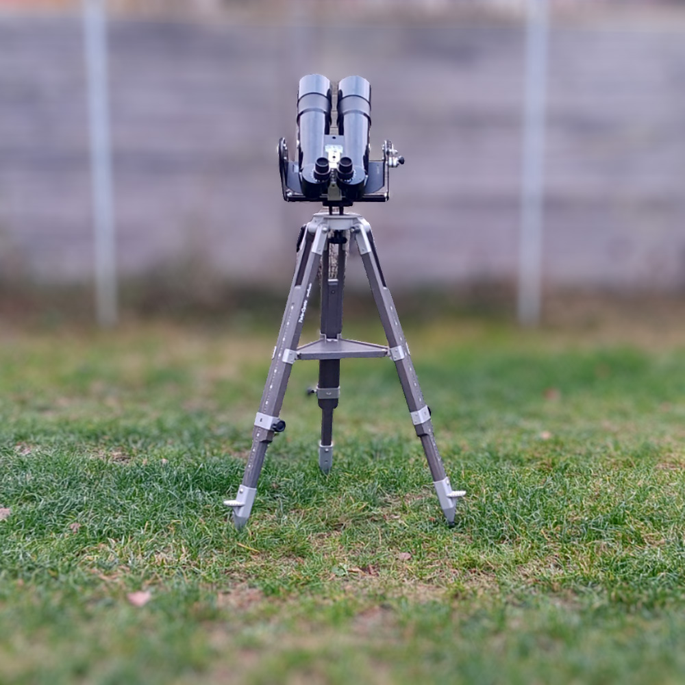 Das Großfernglas wird mit einem Fotostativ und Transportkoffer verliehen.
